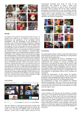 that the recyclable solids can be reused creatively, that they The project accomplished the objective established in the
