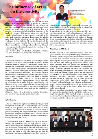 Palabras Clave: Art, Creativity, Artistic Discipline, it combines the qualitative and quantitative methods in a