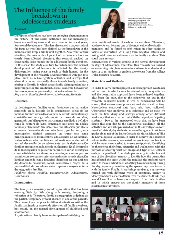 Palabras clave: Familia, Desintegración, Adolescentes, carried out with different types of questions, mainly to