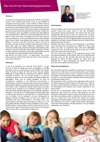 Key Words: Free Time, Covid – 19, Quarantine, Use of Free personal development of the student, since it is during this time