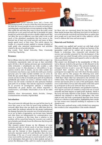 Key words: Tool, Social Networks, Time, Constantly quarantine could not be carried out in person, however