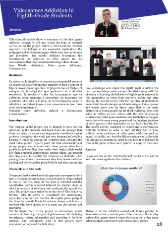 Palabras clave: Adicción; Adición a videojuegos; distraction of young people. In the third workshop, they were
